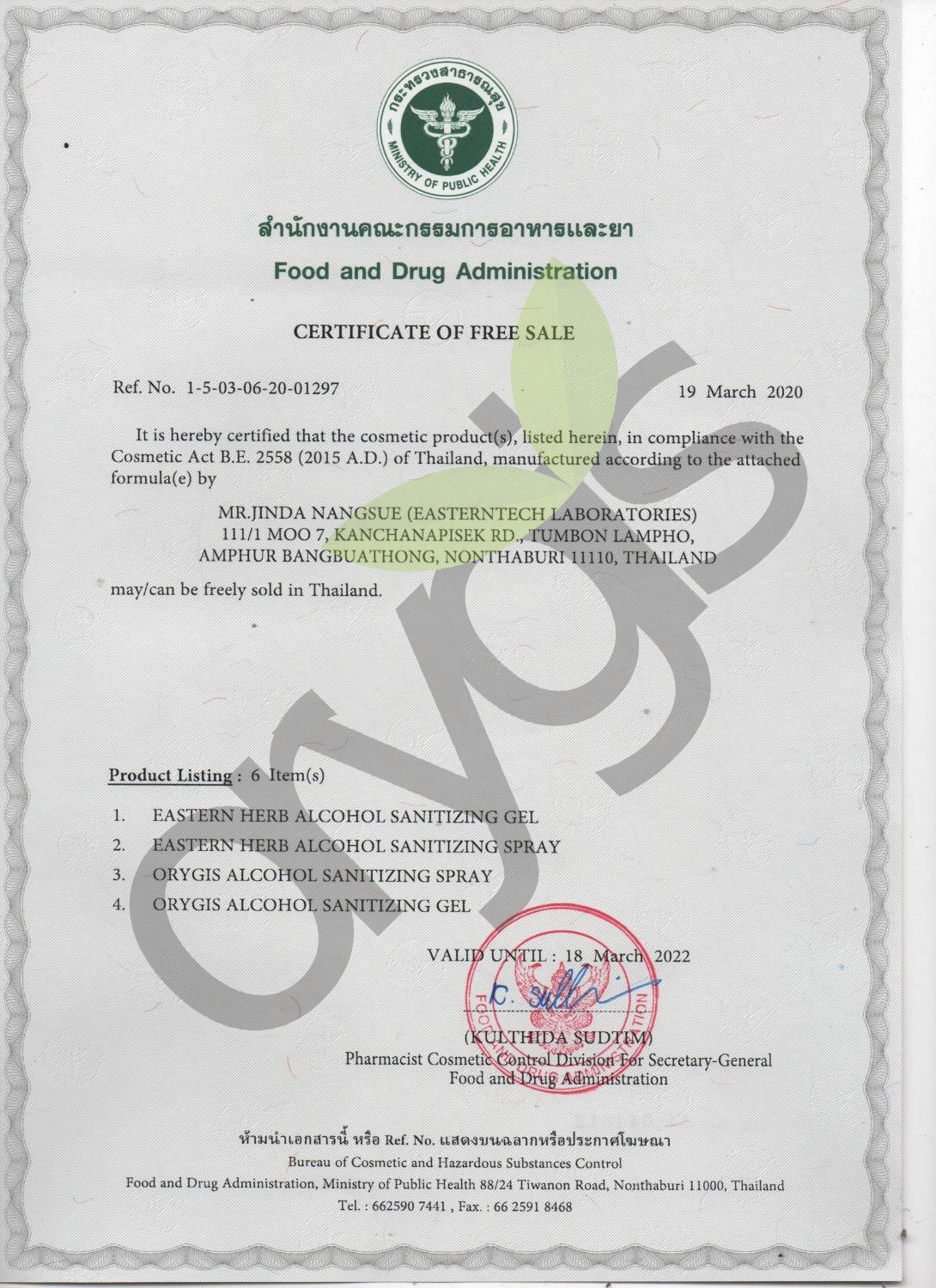 ผลิตโดย อีสเทิร์นเทค แลบบอลาทอรี่ส์ 111/1 หมู่ 7 ต.ลำโพ อ.บางบัวทอง จ.นนทบุรี